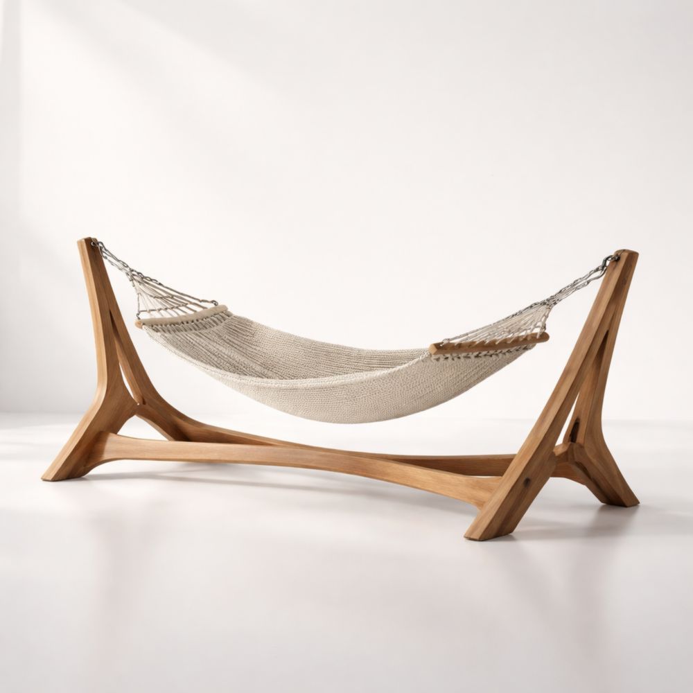 Amaca con struttura in legno teak e tessuto beige in cotone