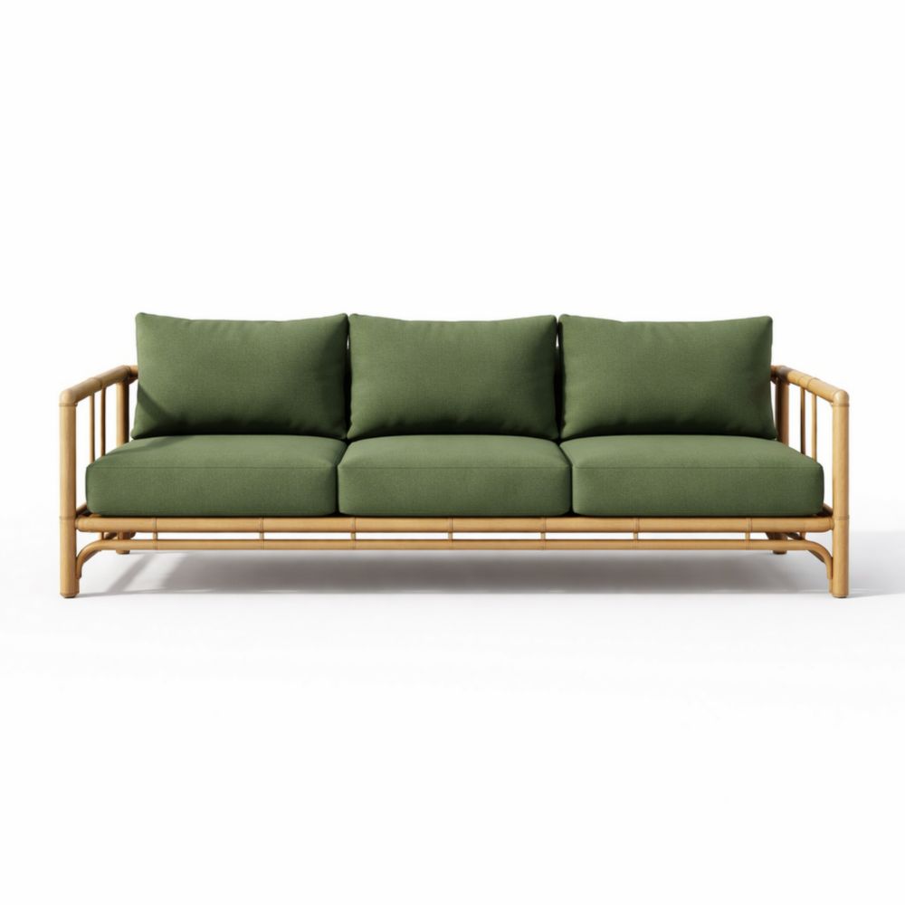 Divano a tre posti in bamboo e tessuto verde