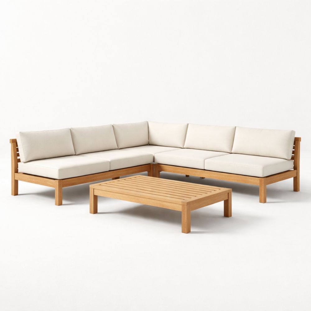 Divano Angolare da Giardino in Legno di Teak con Tavolino