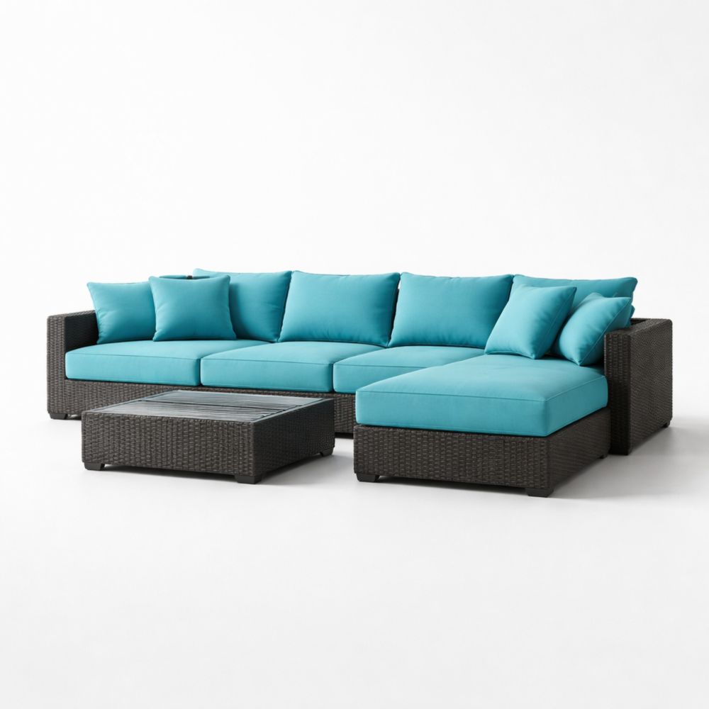 Divano Angolare in Rattan Sintetico con Cuscini Turchesi