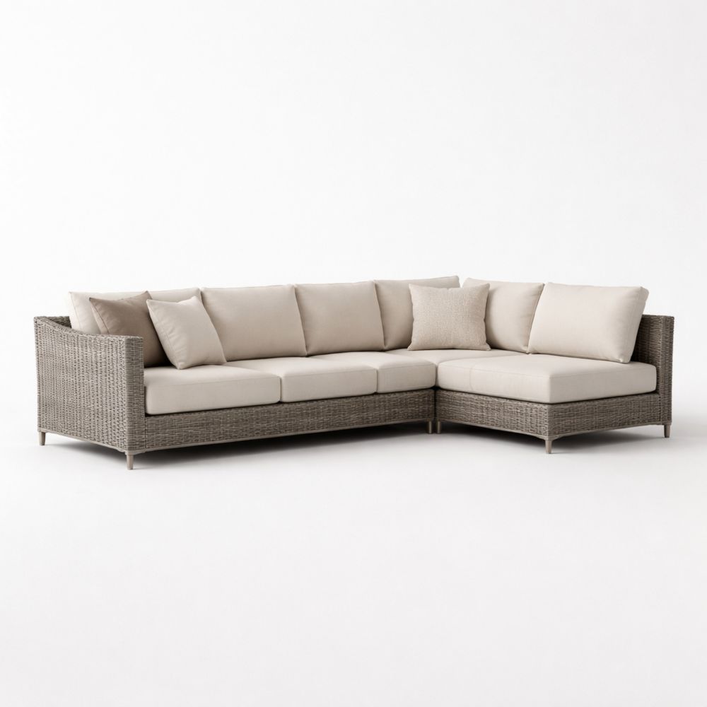 Divano Angolare in Rattan Sintetico Grigio Chiaro con Cuscini Beige