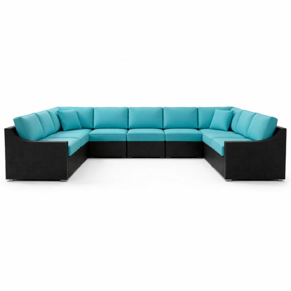Divano angolare modulare in rattan nero con cuscini turchese 250x250x70 cm