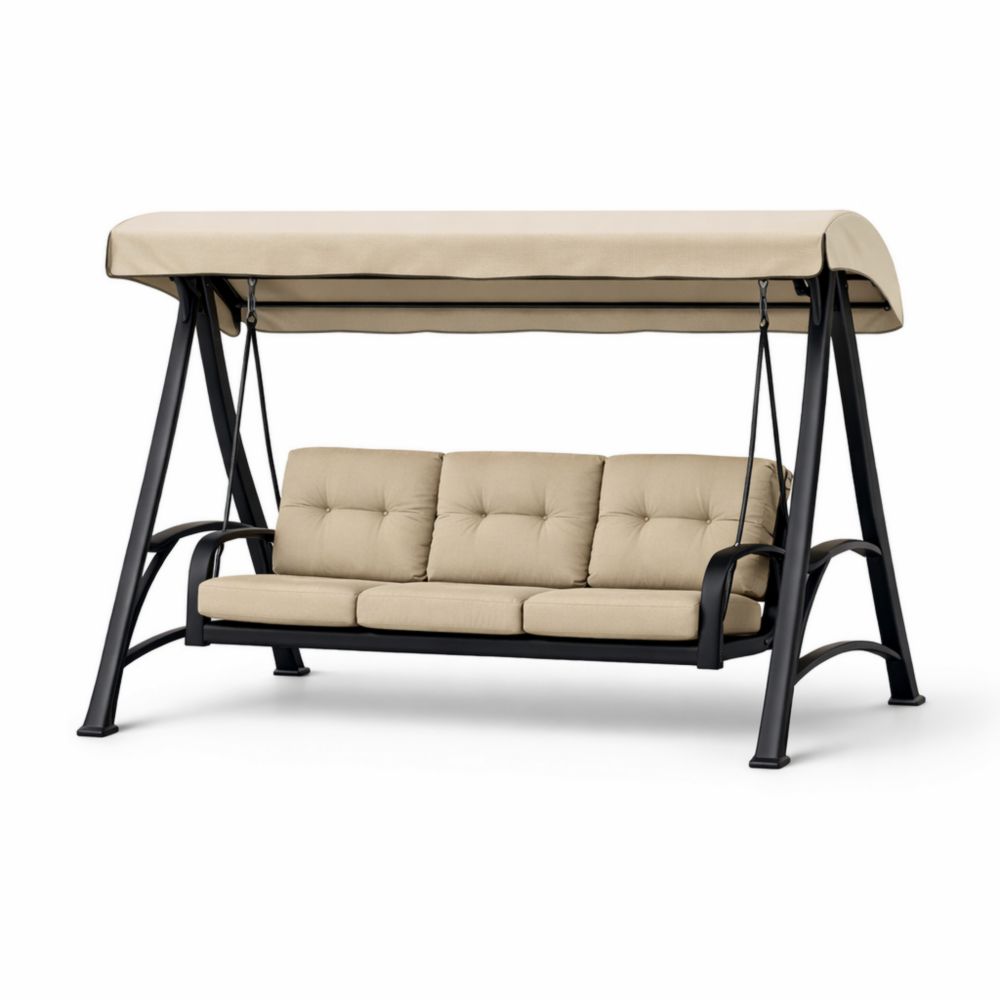 Dondolo a 3 Posti in Metallo con Cuscini in Tessuto Beige