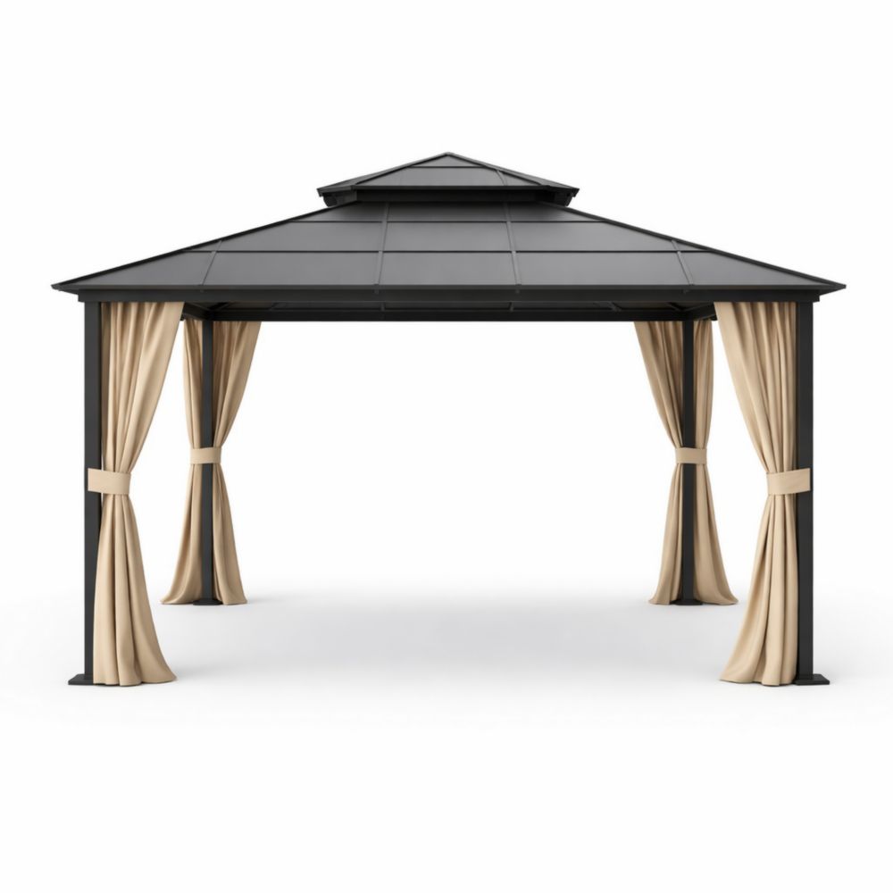 Materiale: Struttura in alluminio, tetto in acciaio, tende in poliestere.