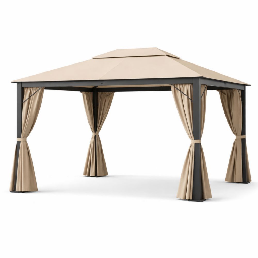 Gazebo in acciaio inossidabile con tende in tessuto di poliestere.