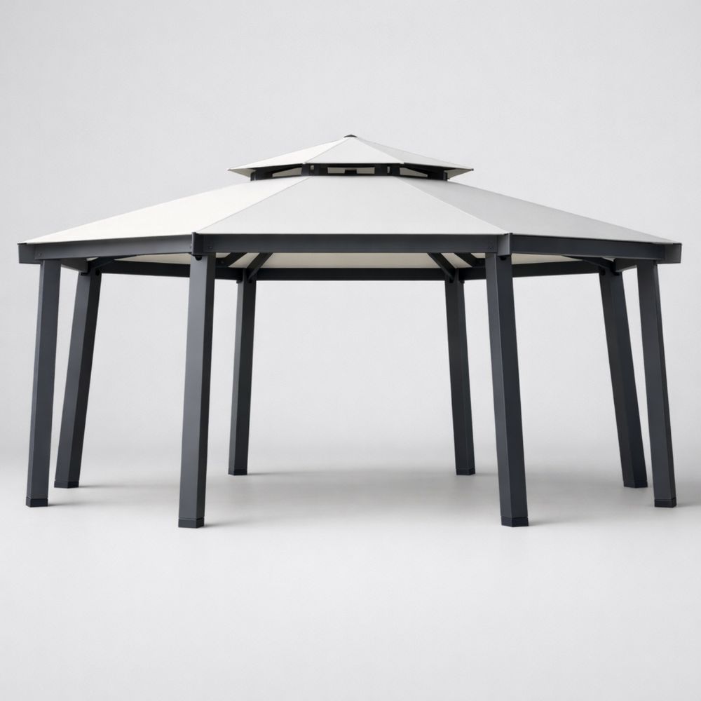 Gazebo Ottagonale Grigio Struttura in Alluminio e Copertura in Poliestere