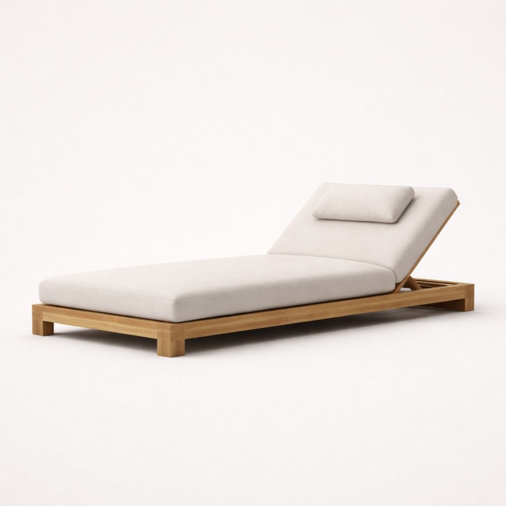 Lettino in Legno di Teak con Rivestimento in Poliestere Crema