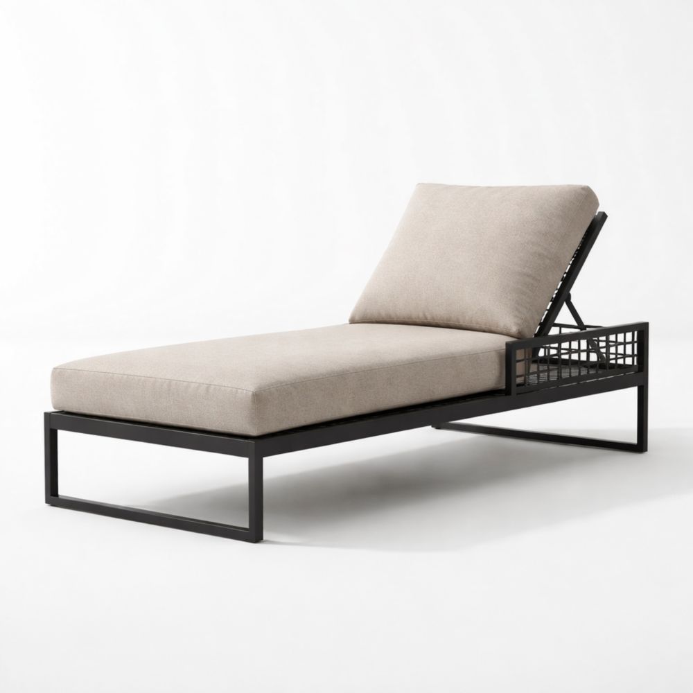 Lettino prendisole in alluminio nero e poliestere grigio