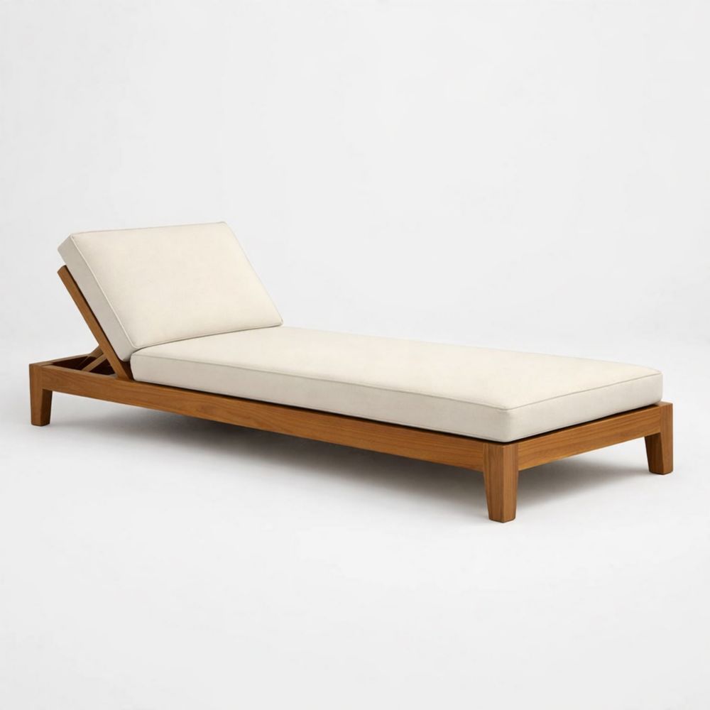 Lettino Prendisole in Legno di Teak con Cuscino Regolabile Ecru