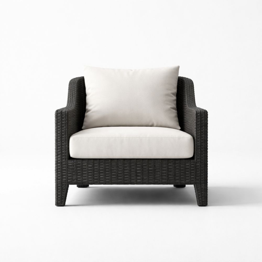 Poltrona in Rattan Sintetico Nero con Cuscini Bianchi