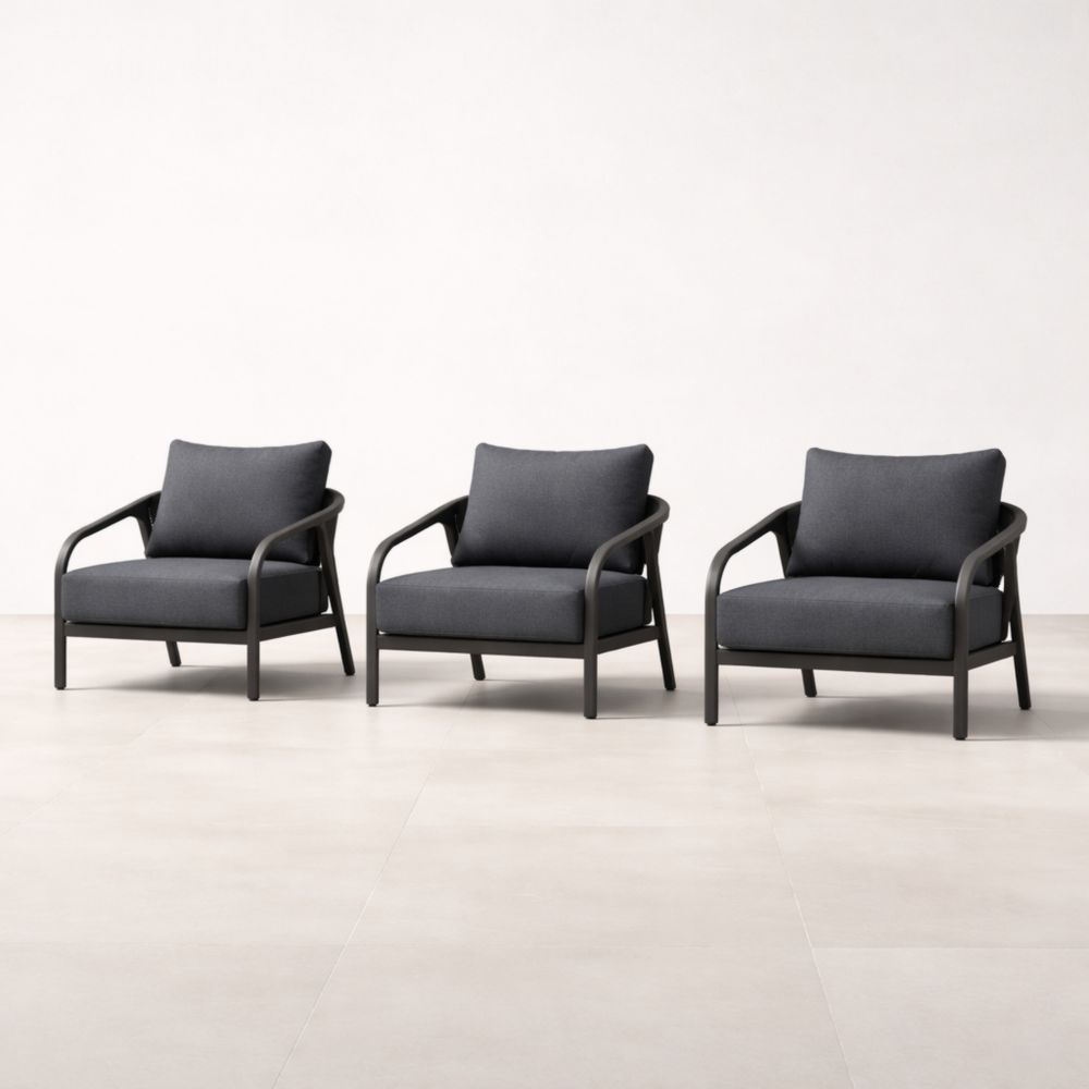 Set di 3 Poltrone da Esterno in Alluminio e Tessuto Grigio Antracite
